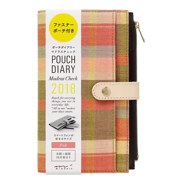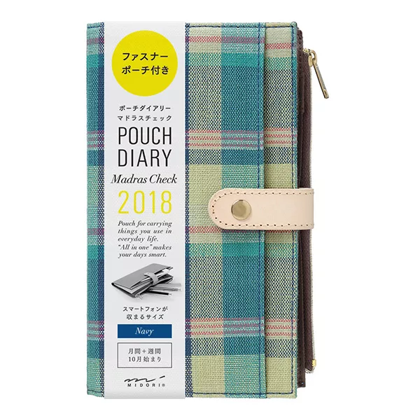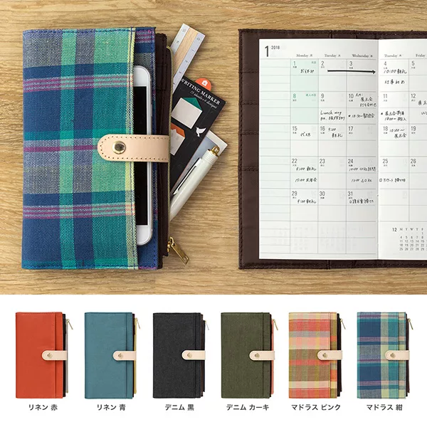 MIDORI Pouch Diary 2018亞麻/丹寧/馬德拉斯綿手帳