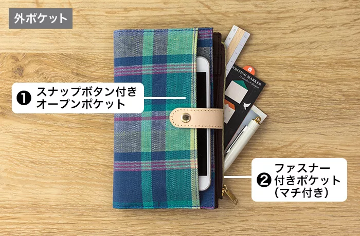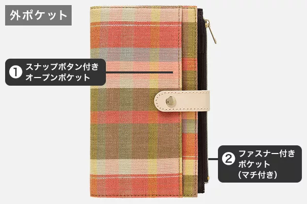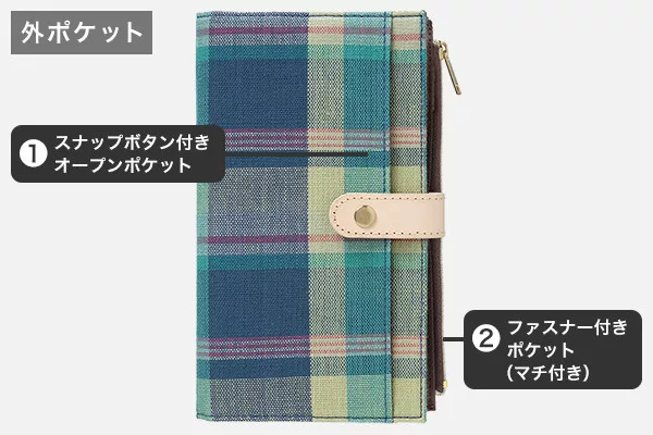 ?????????馬德拉斯綿: 封套表面/馬德拉斯綿(2口袋)? 封套內側/聚酯纖維(6口袋、附筆套)?